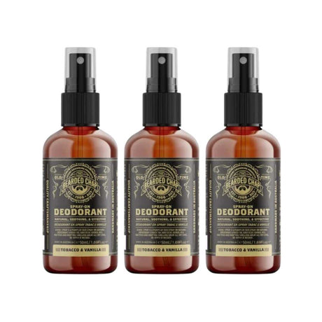The Bearded Chap Tobacco & Vanilla Spray-On Deodorant Trio
