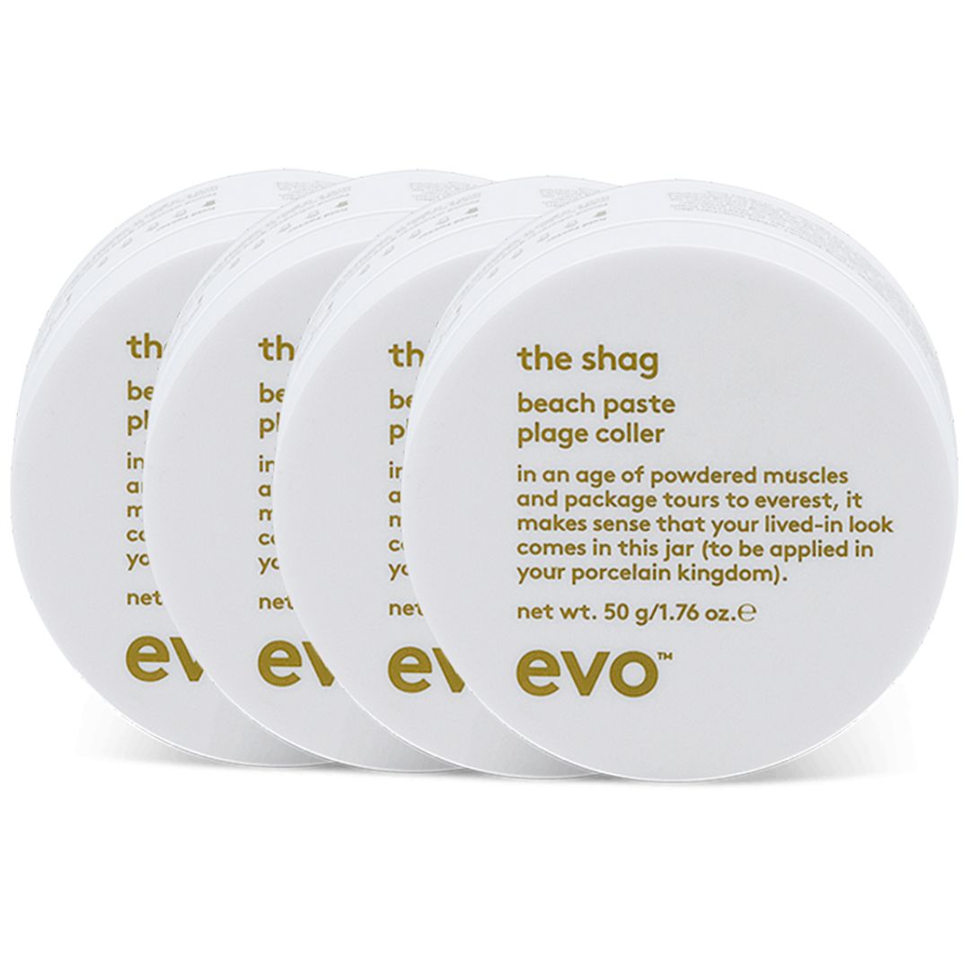 This bundle includes 4 x The Shag Beach Paste. A styling paste that creates beachy, lived-in texture with a matte finish. The Shag Beach Paste creates beachy texture and volume in all hair types. In addition to style support and separation, this hair styling paste contains kaolin to provide a matte finish. Added zeolite absorbs excess oil and impurities, while coconut oil helps to condition hair and eliminate frizz.