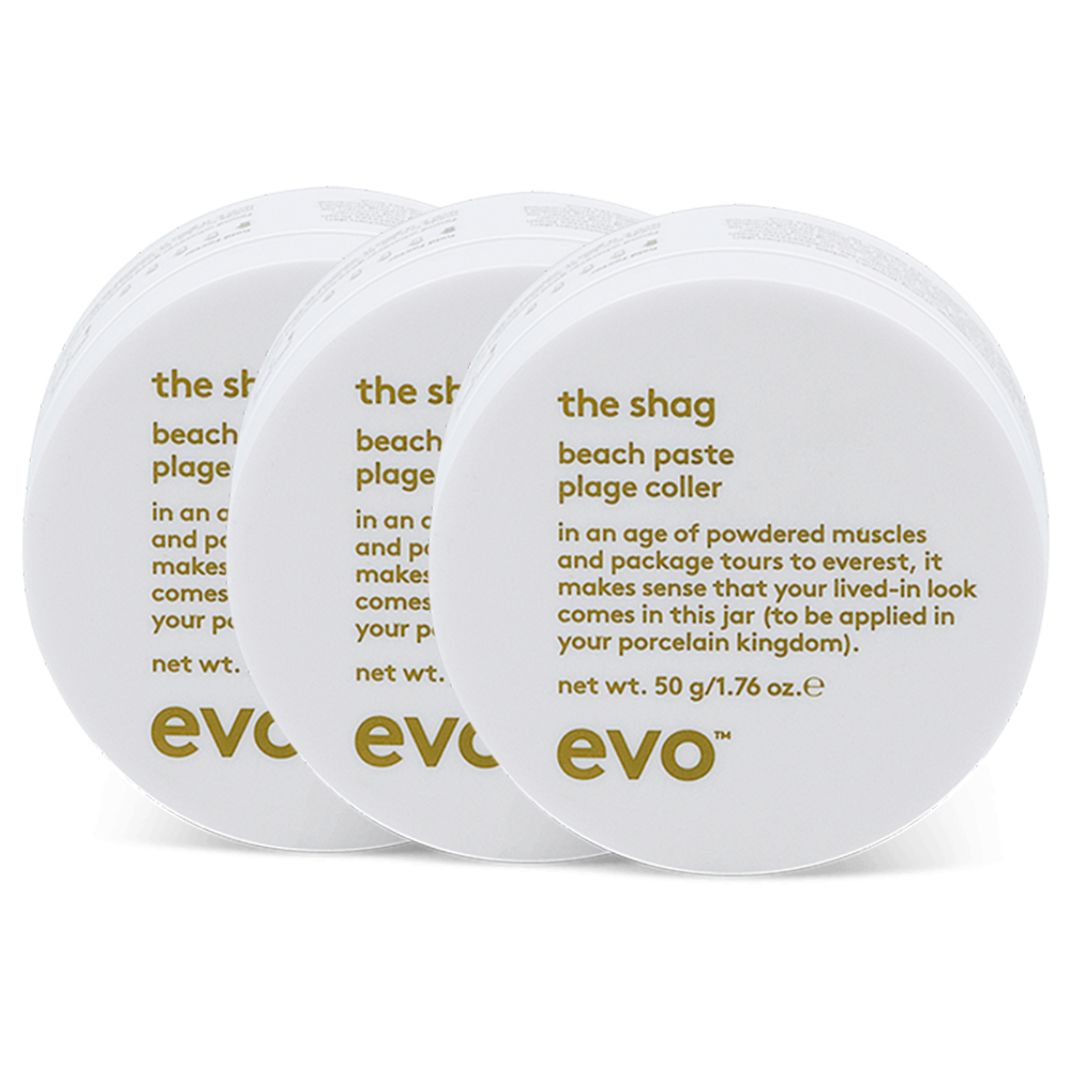 This bundle includes 3 x The Shag Beach Paste. A styling paste that creates beachy, lived-in texture with a matte finish. The Shag Beach Paste creates beachy texture and volume in all hair types. In addition to style support and separation, this hair styling paste contains kaolin to provide a matte finish. Added zeolite absorbs excess oil and impurities, while coconut oil helps to condition hair and eliminate frizz.
