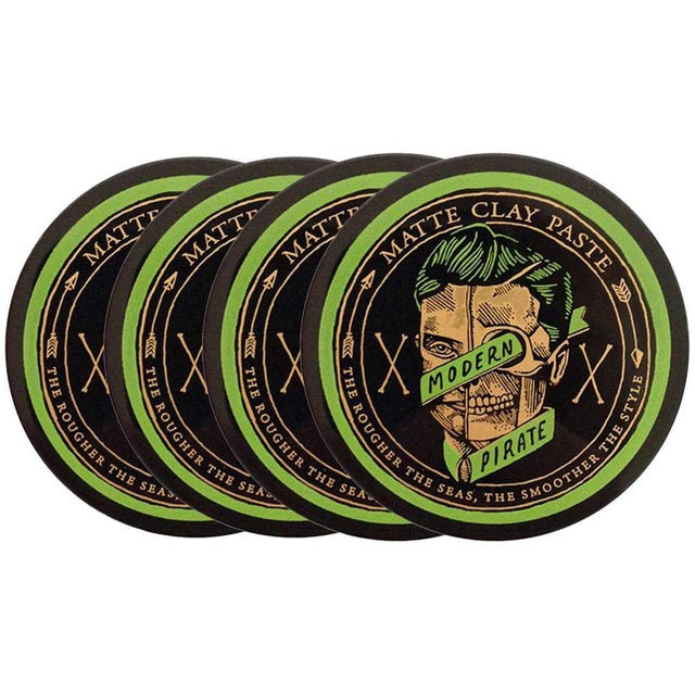 This bundle includes 4 x Modern Pirate's Matte Clay Paste. This paste is a versatile, no-shine styling product for anyone desiring a natural finish. This product provides a light to medium hold and is great for “messy” beach hairstyles as well as sophisticated, groomed looks. Matte clay paste will thicken, moisturise and add volume without weighing down the hair.