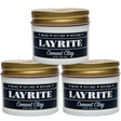 This bundle contains 3 x Layrite Cement Clay. It is ideal for creating messy or structured looks. This water-based, matte styling clay thickens and texturises without flaking. With a reworkable finish, you have the freedom to create and change your style as needed throughout the day.