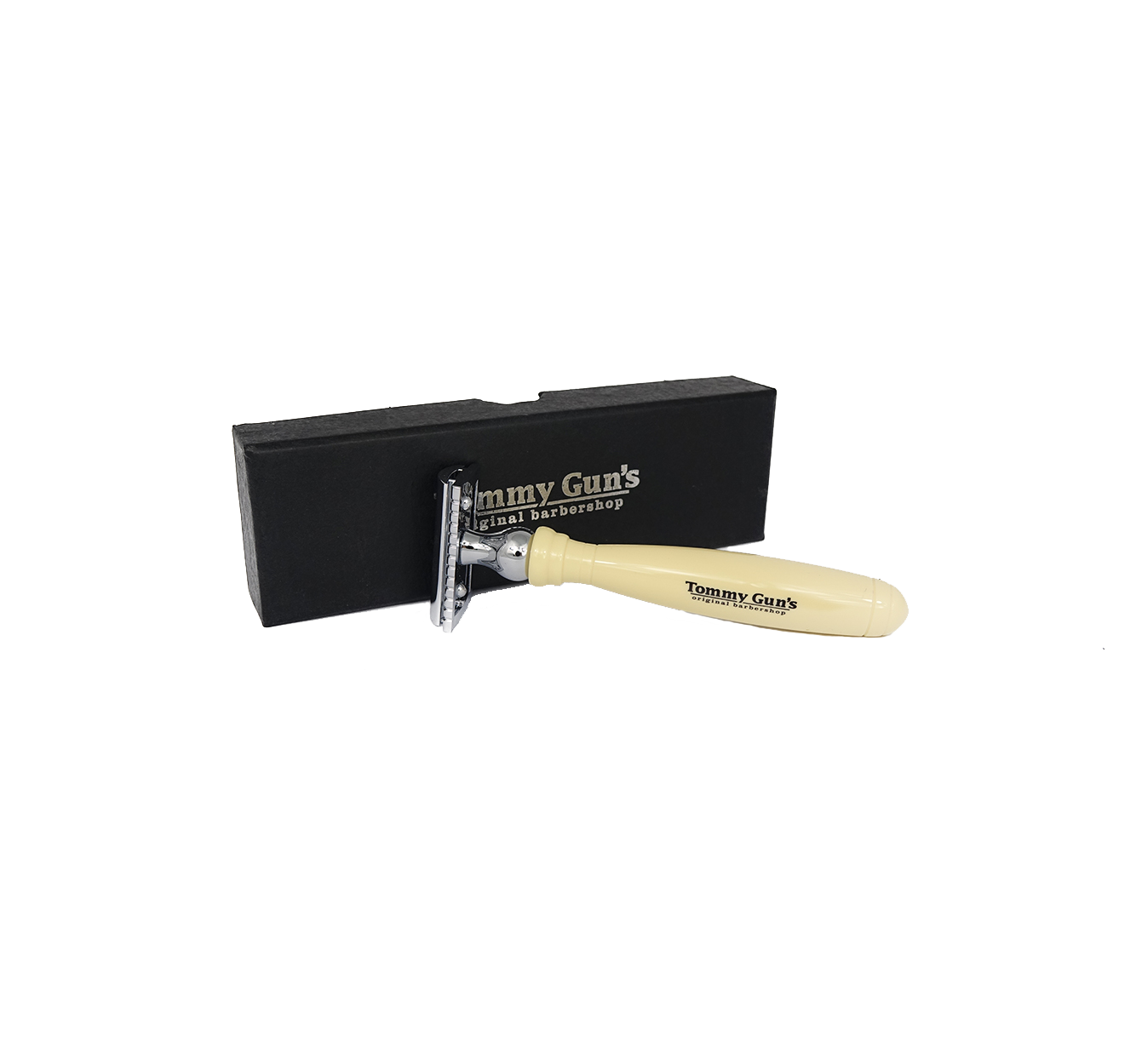 The Tommy Gun's Barbershop Safety Razor is a luxurious men's razor with a protective device positioned between the edge of the blade and the skin to reduce the risk of nicks and cuts when shaving.