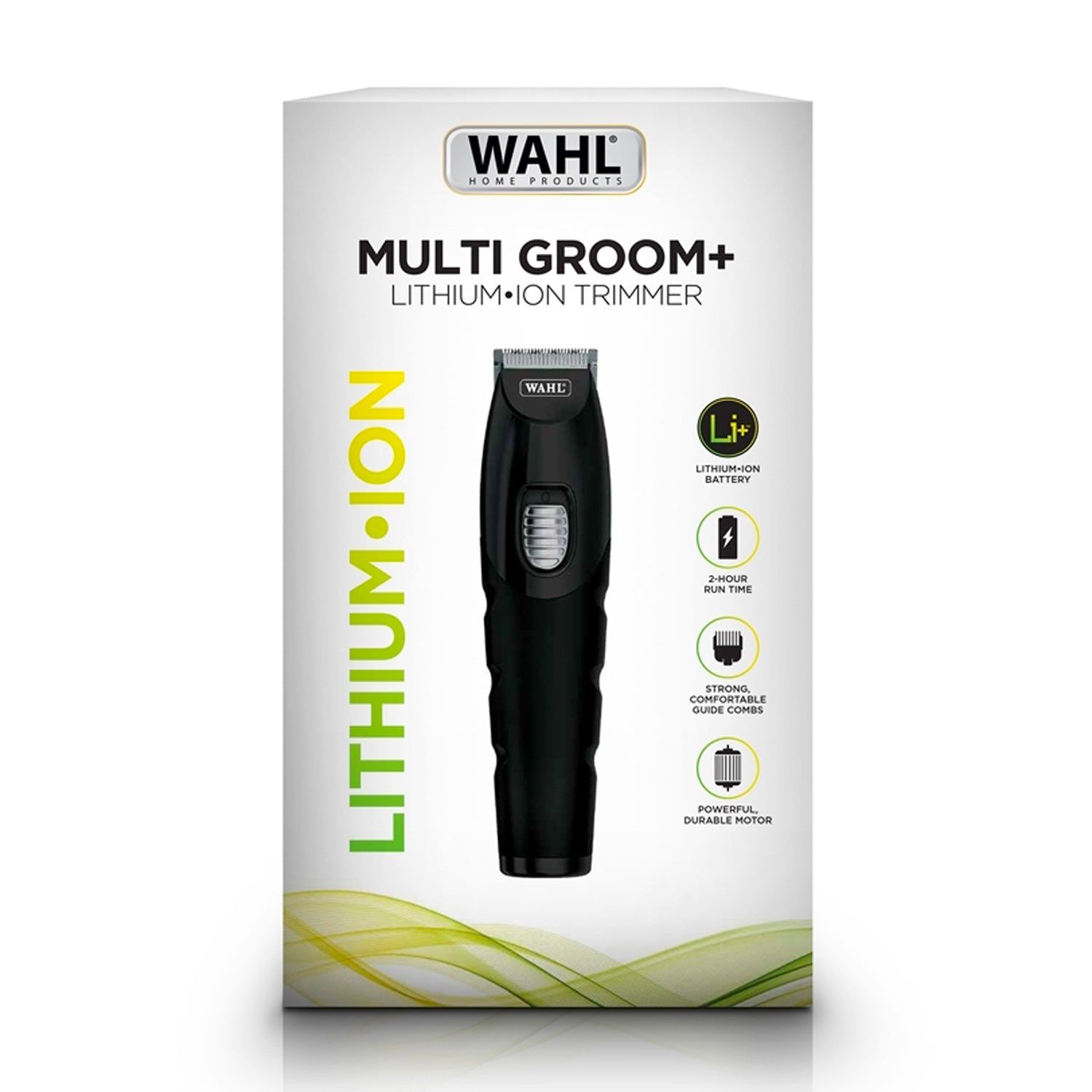 An all-round trimmer for multi-purpose trimming. The Wahl Multi Groom+ Trimmer is designed with a powerful Lithium-Ion Battery that gives you 2 hours run time off a full charge.